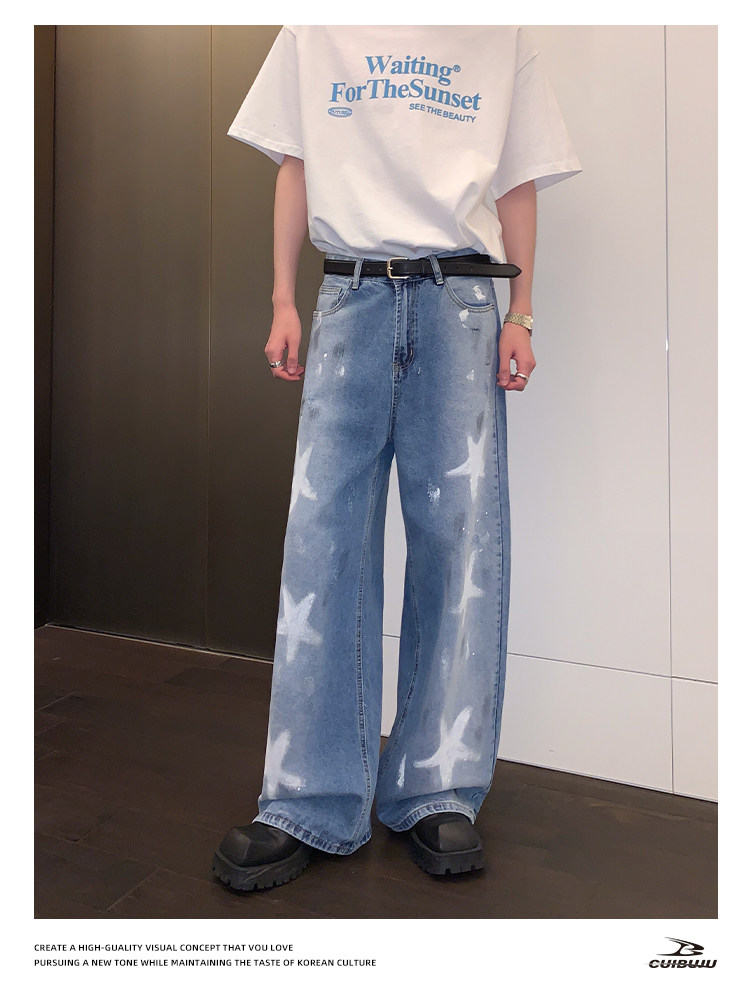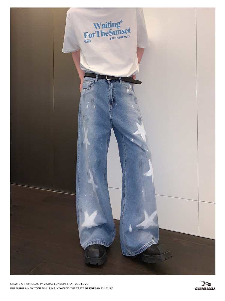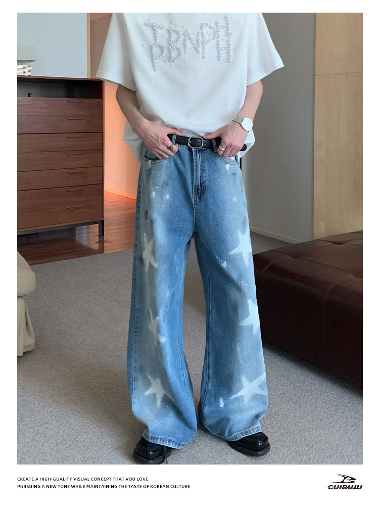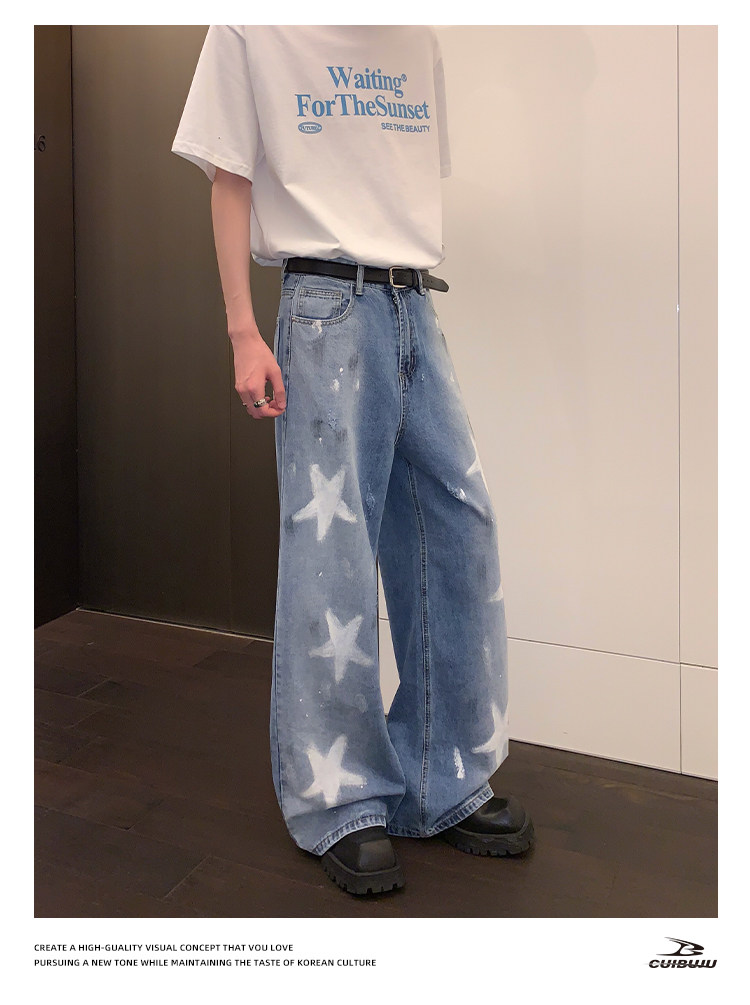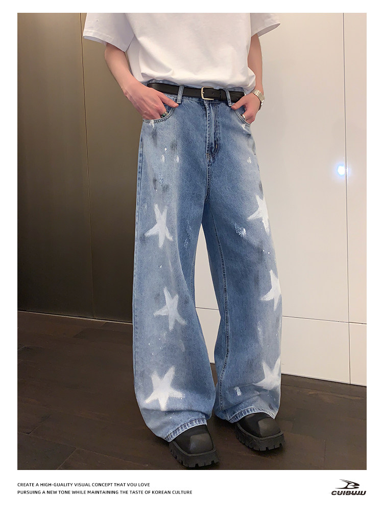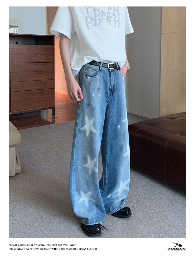 [Celebrity Style] Cuibuju Original Design Distressed Paint Graffiti Pentagram Straight Loose Jeans