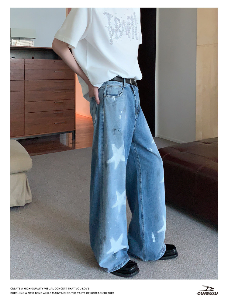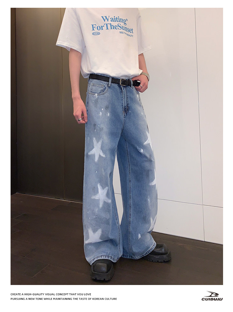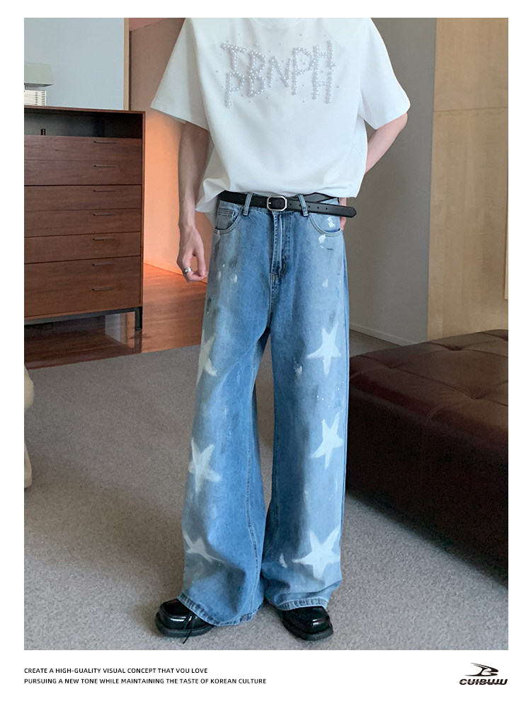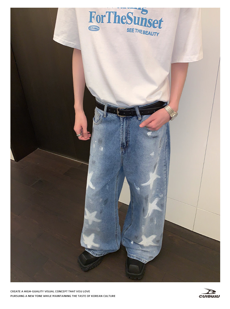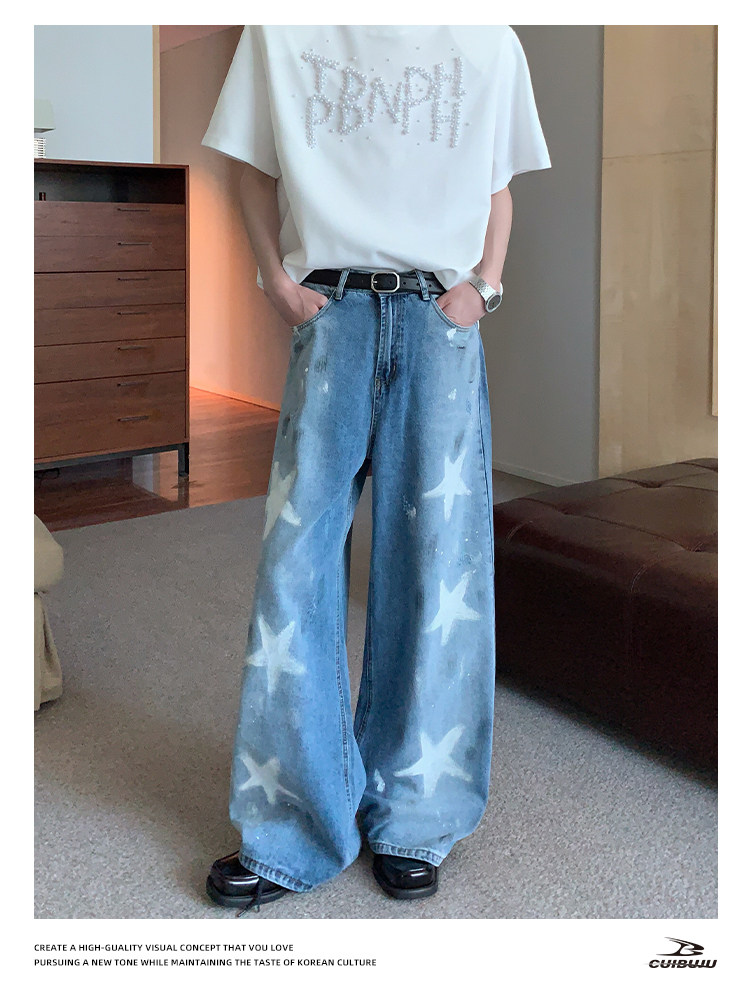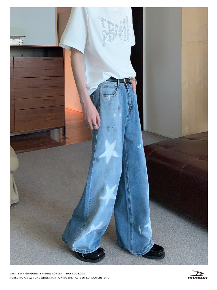 [Celebrity Style] Cuibuju Original Design Distressed Paint Graffiti Pentagram Straight Loose Jeans