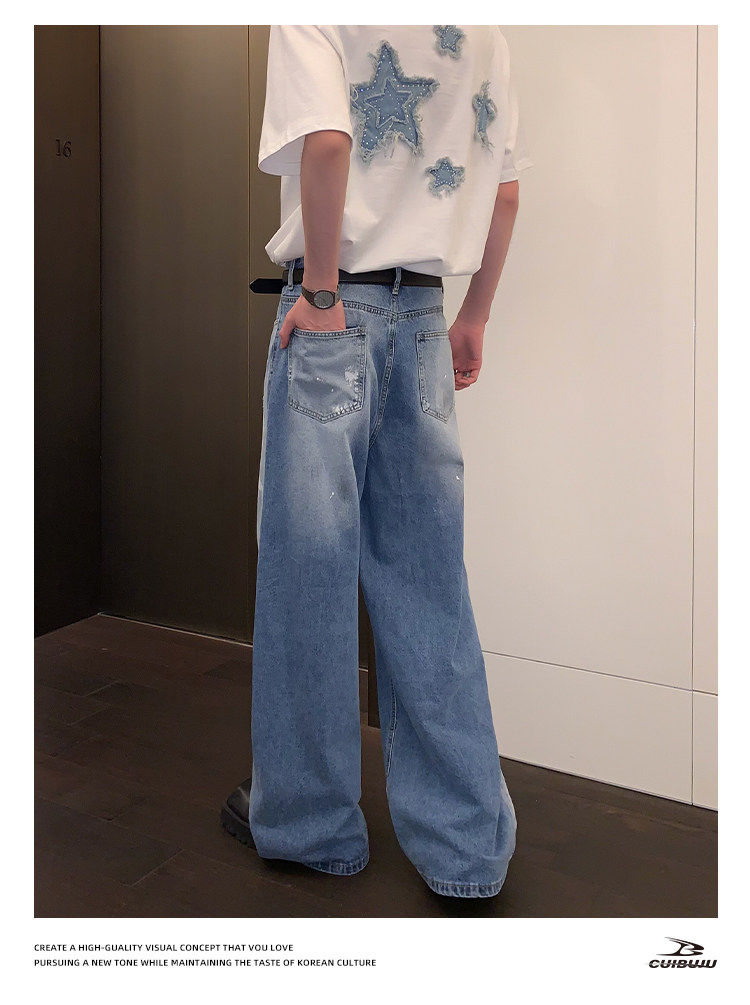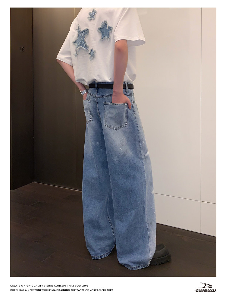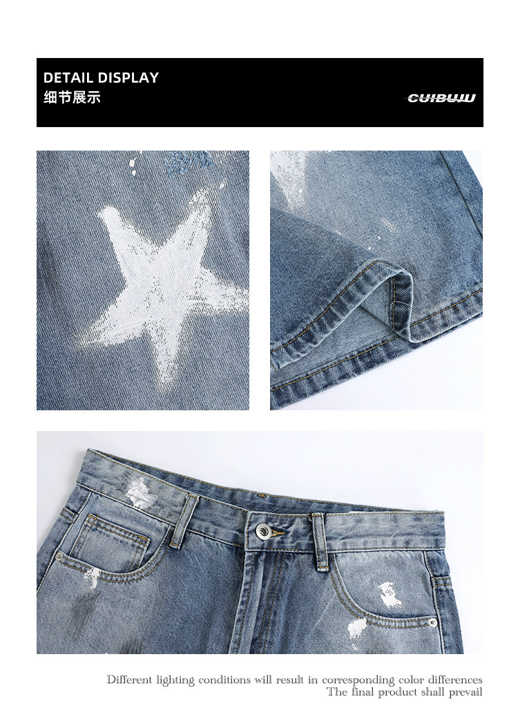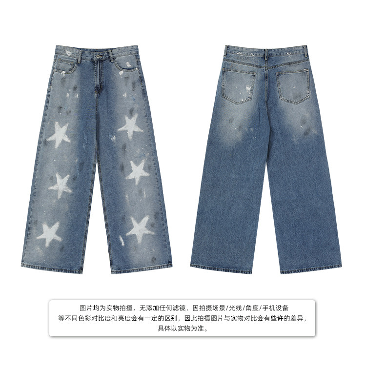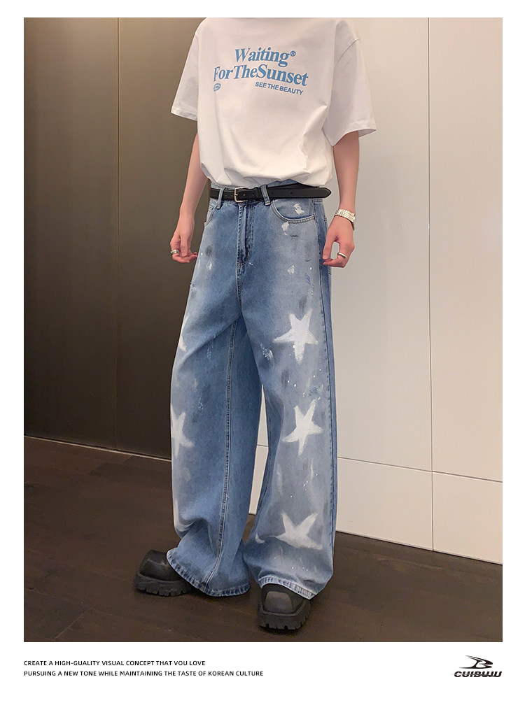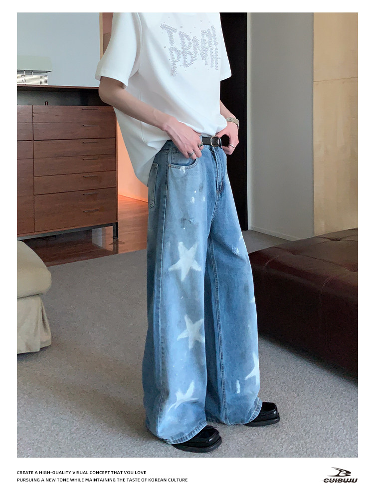 [Celebrity Style] Cuibuju Original Design Distressed Paint Graffiti Pentagram Straight Loose Jeans
