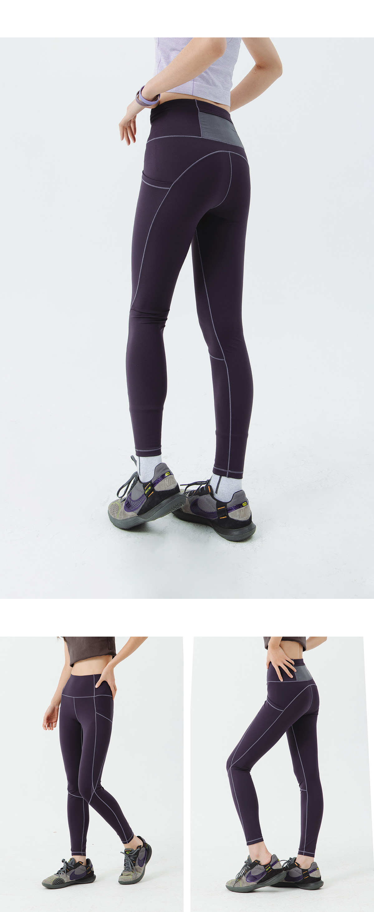 Lanqi Outdoor Sports Moisture-Wicking High-Waisted Tight-Fitting Cycling Pants High-Elastic Spliced Butt-Lifting Visible Seam Yoga Pants for Women