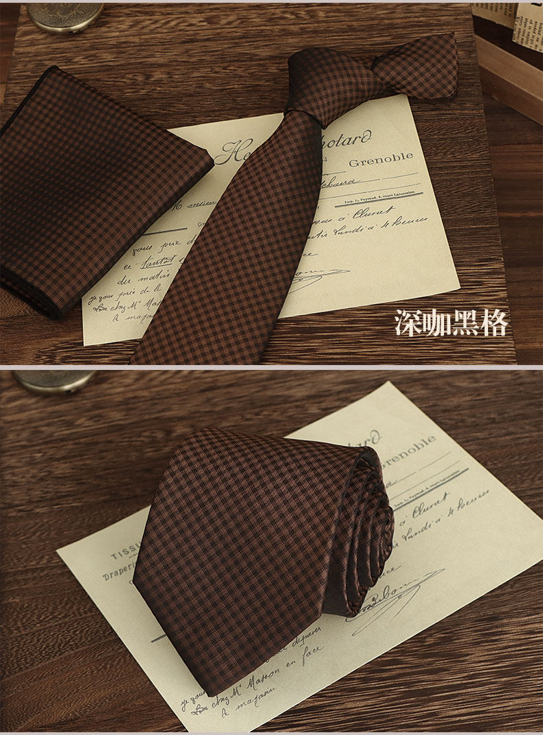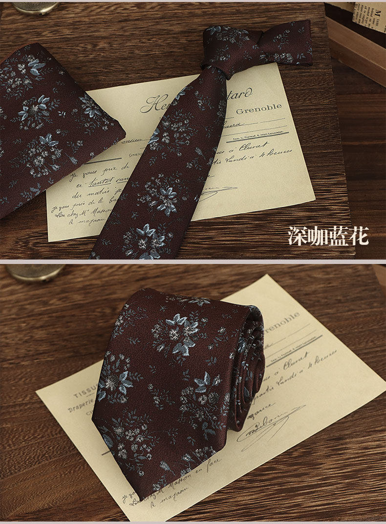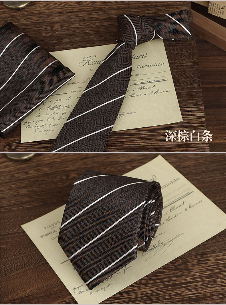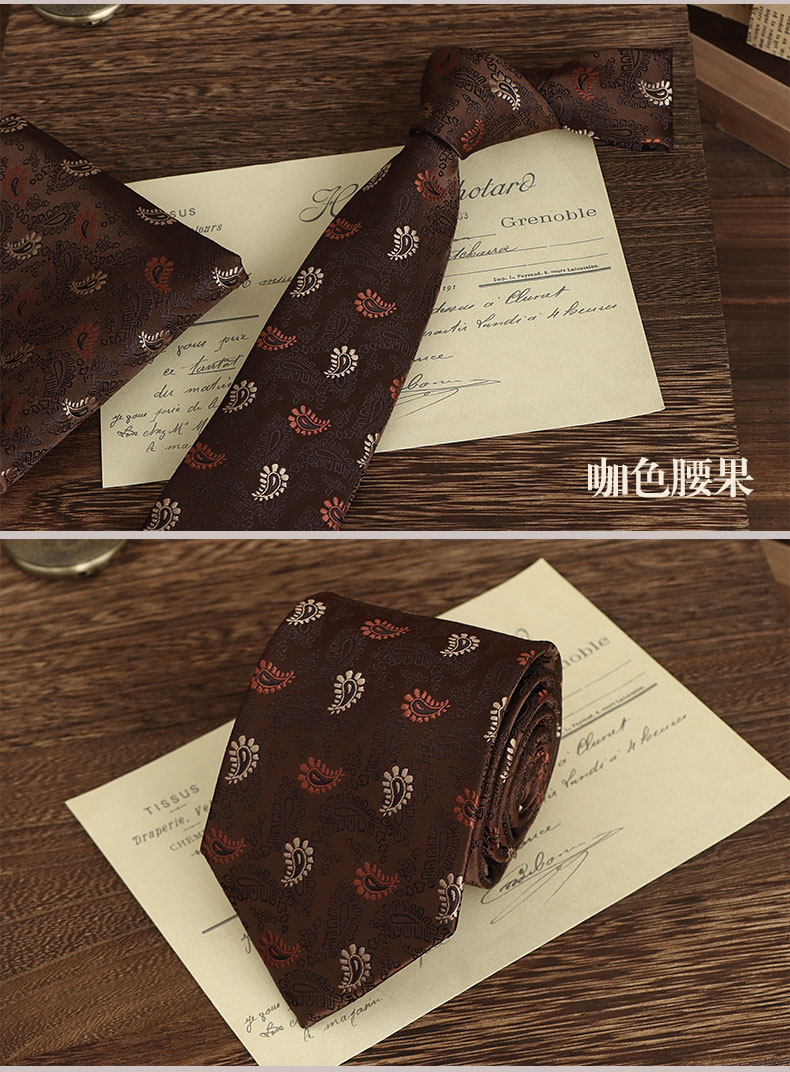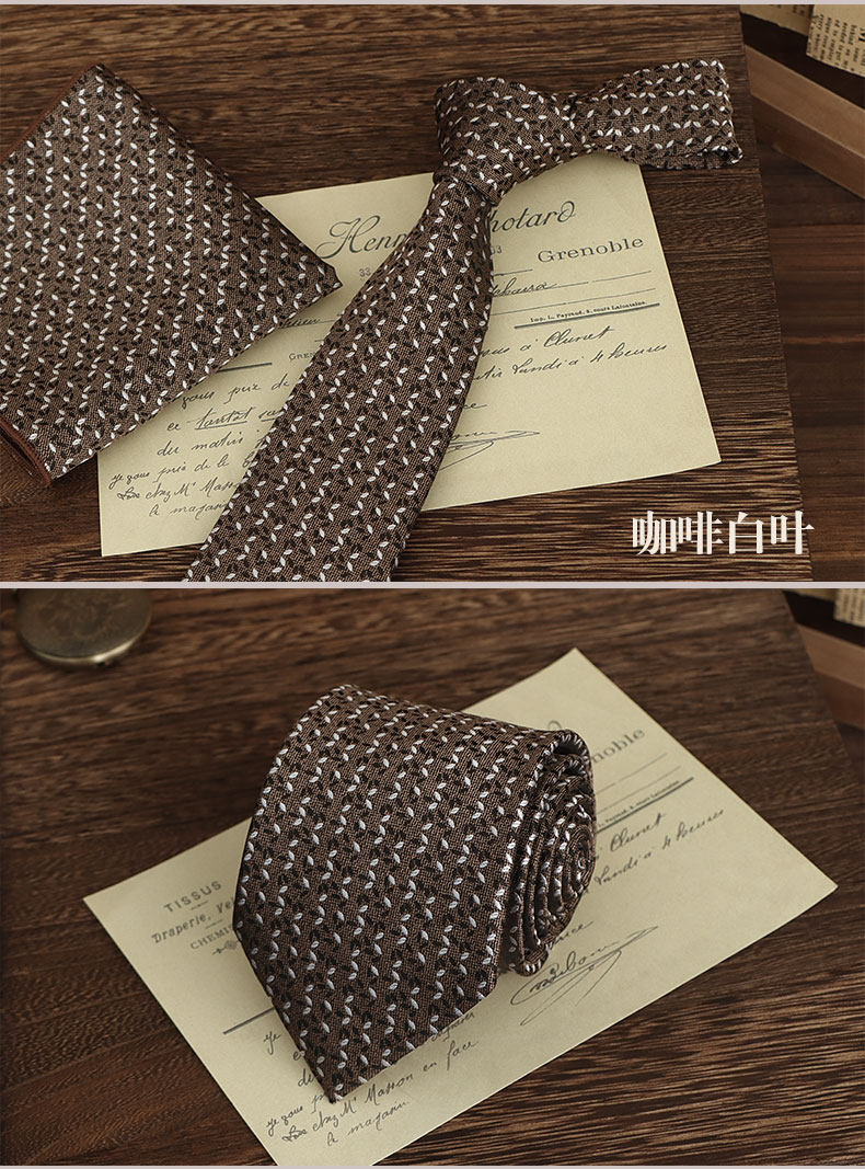 Brown Hand-Tied Tie for Men, Retro British Style, 8cm, Formal Casual Business Coffee Pattern, Wedding Groom Wedding Box