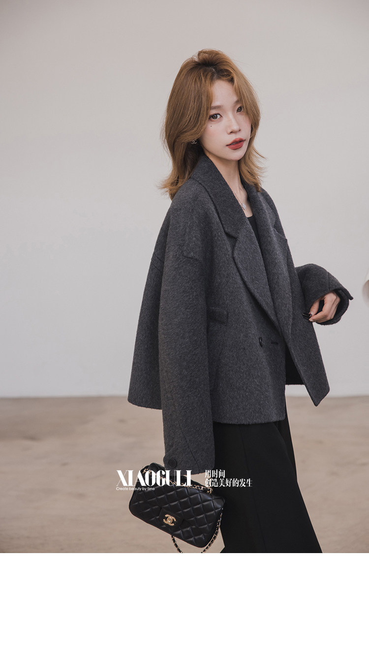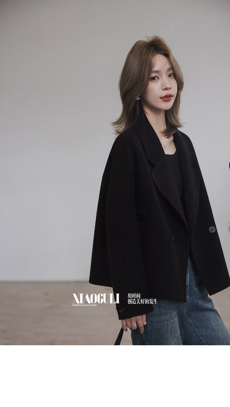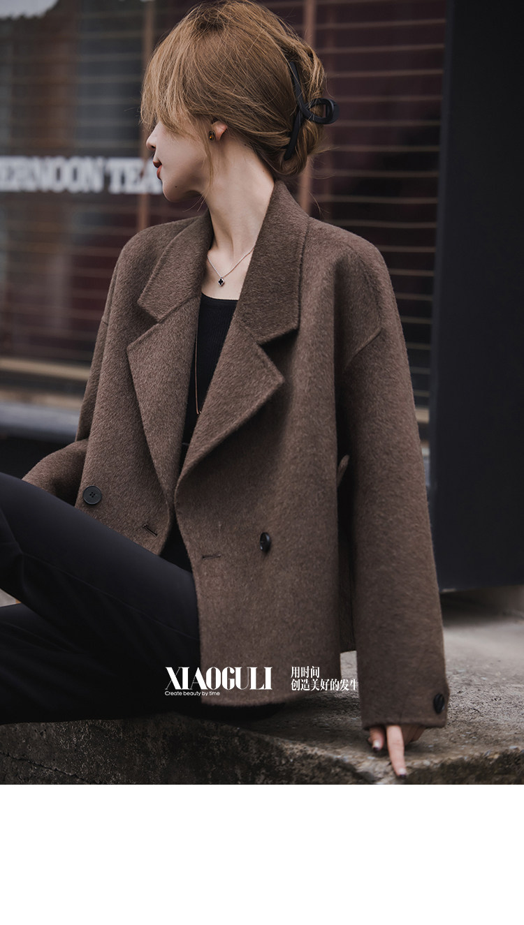 Xiaoguli Lyon Coat 100% Wool Heavy-Duty Short Double-Sided Woolen Coat for Women, New Loose-Fitting Top for Autumn and Winter