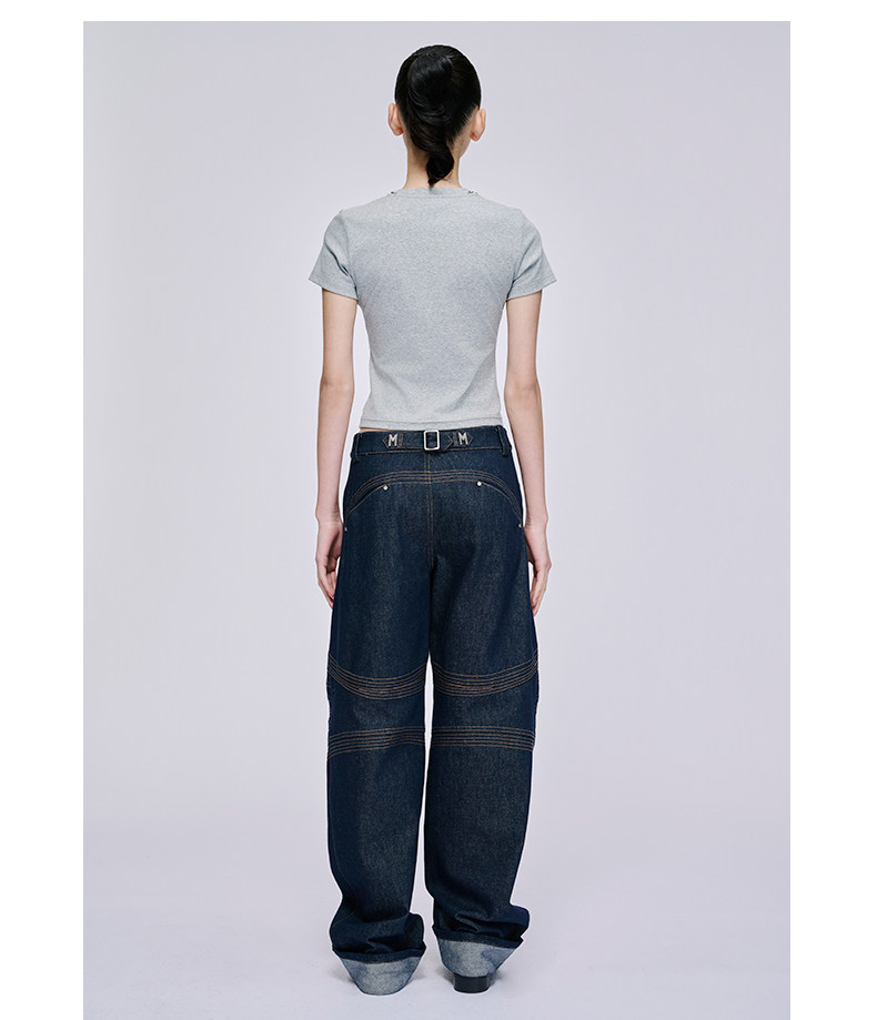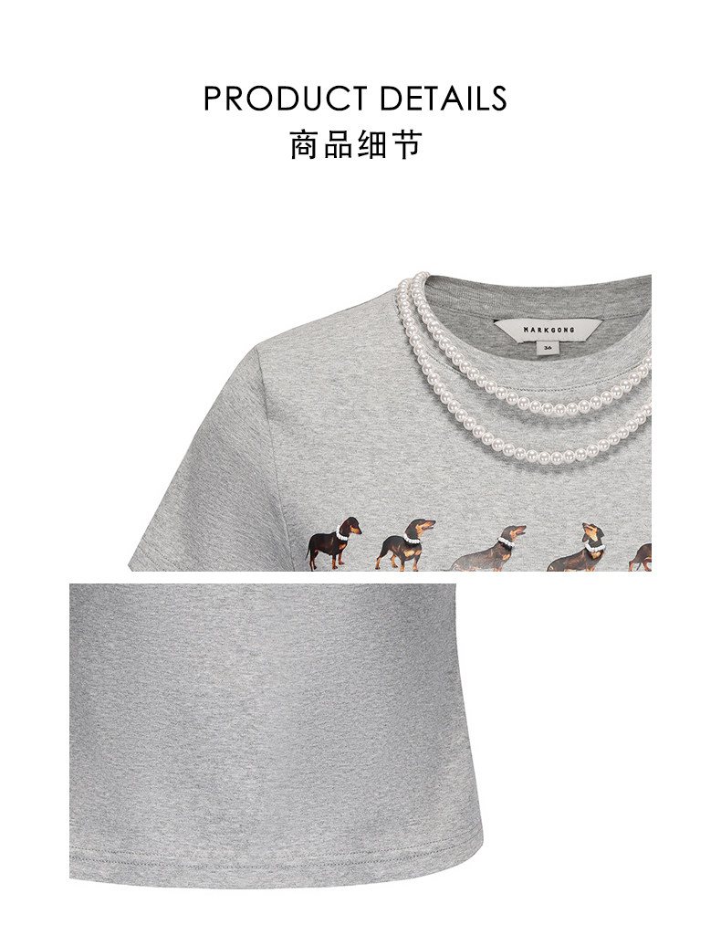 【Markgong】【Jennie's Style】Dog Print Elastic Short-Sleeved Trendy Autumn and Winter Casual Women's Clothing