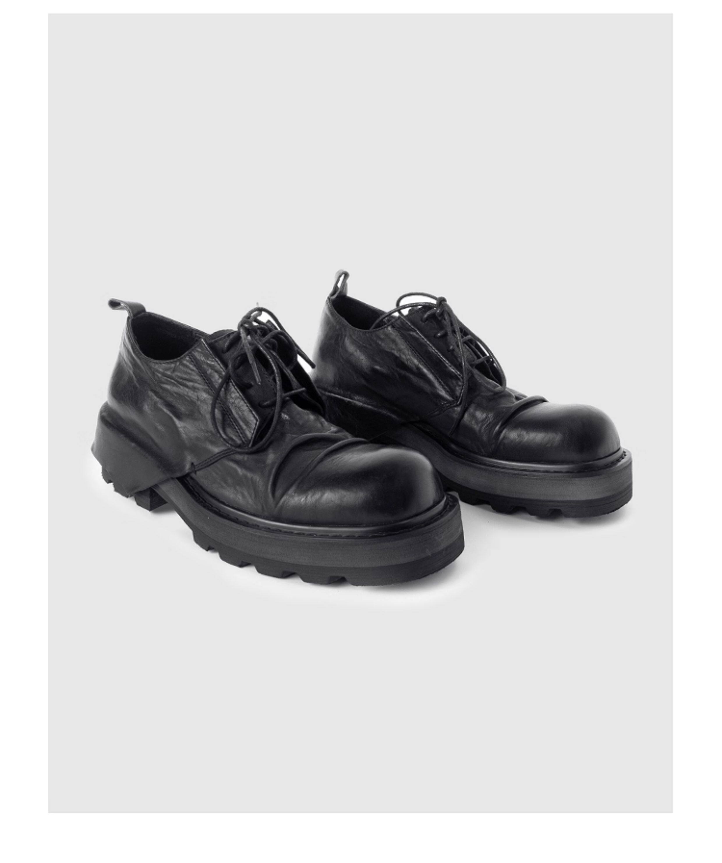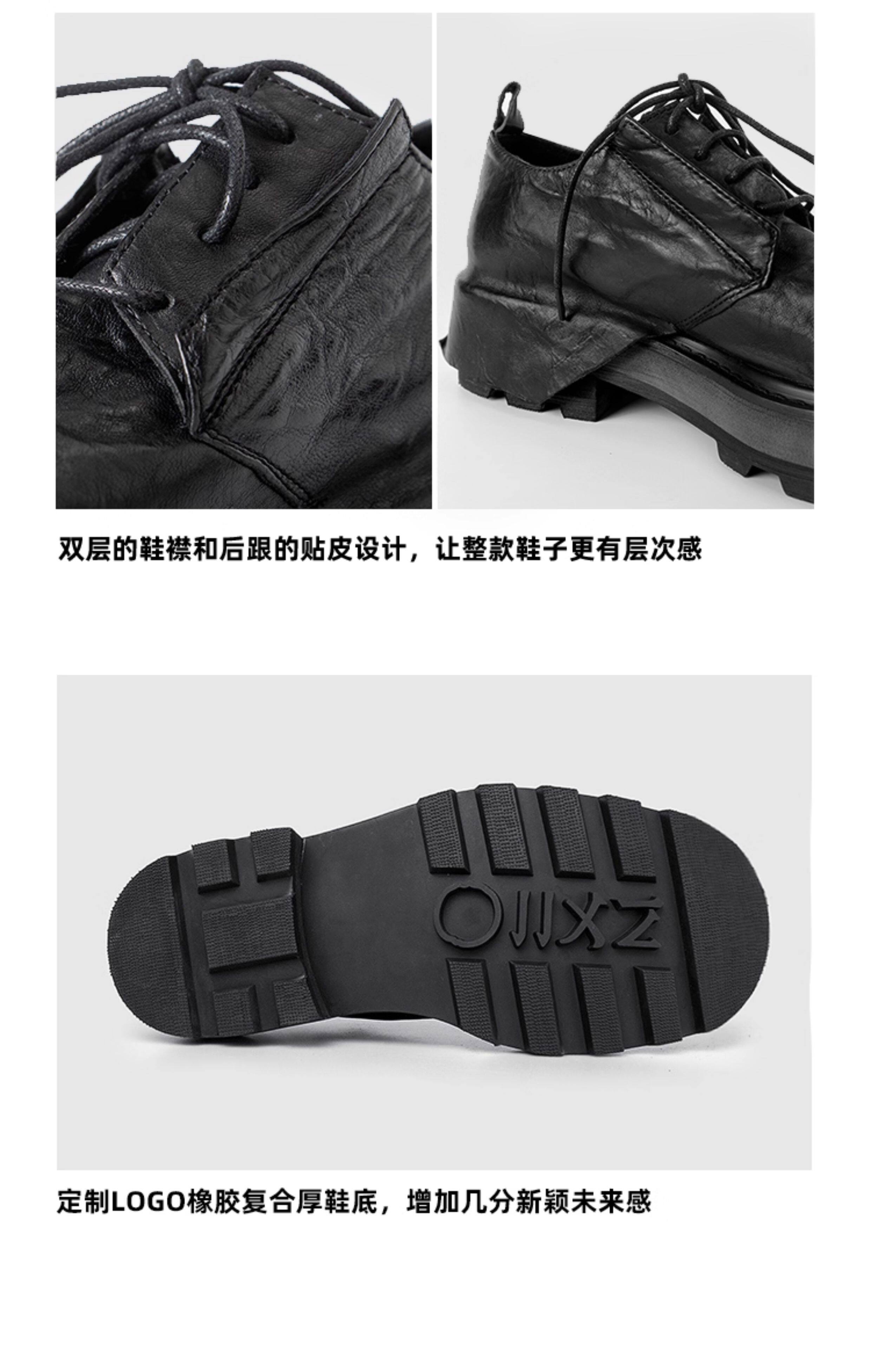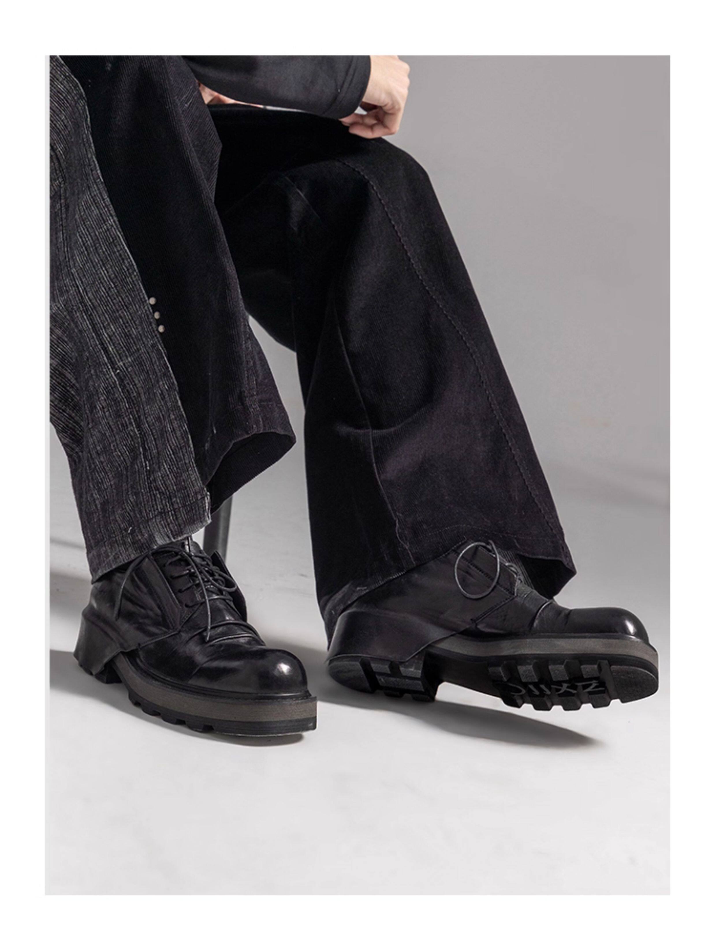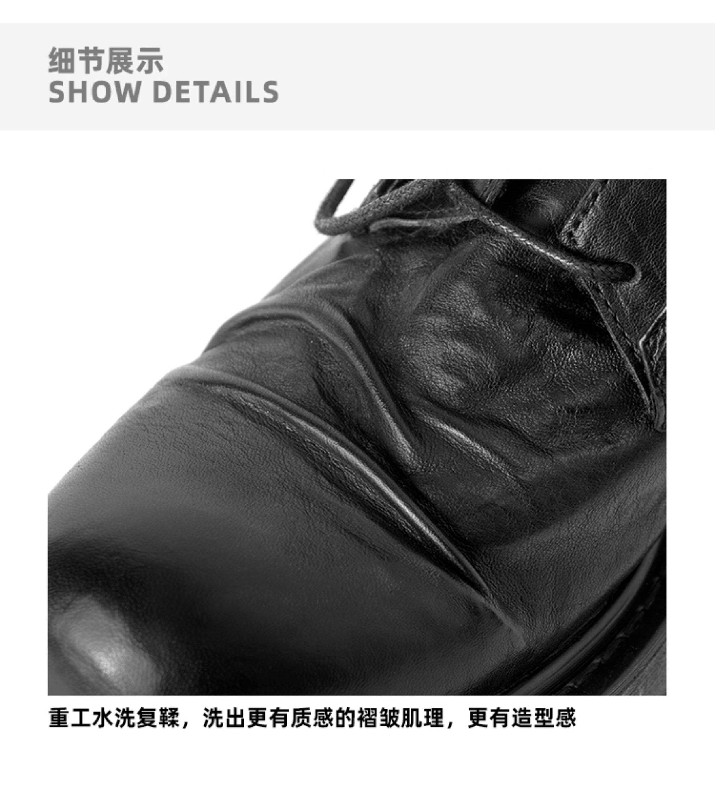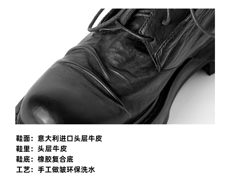 Illusionist Original Design Round-Toe Derby Shoes for Men, Washed Wrinkled Leather Thick-Soled Shoes, Height-Increasing Shoes for Women