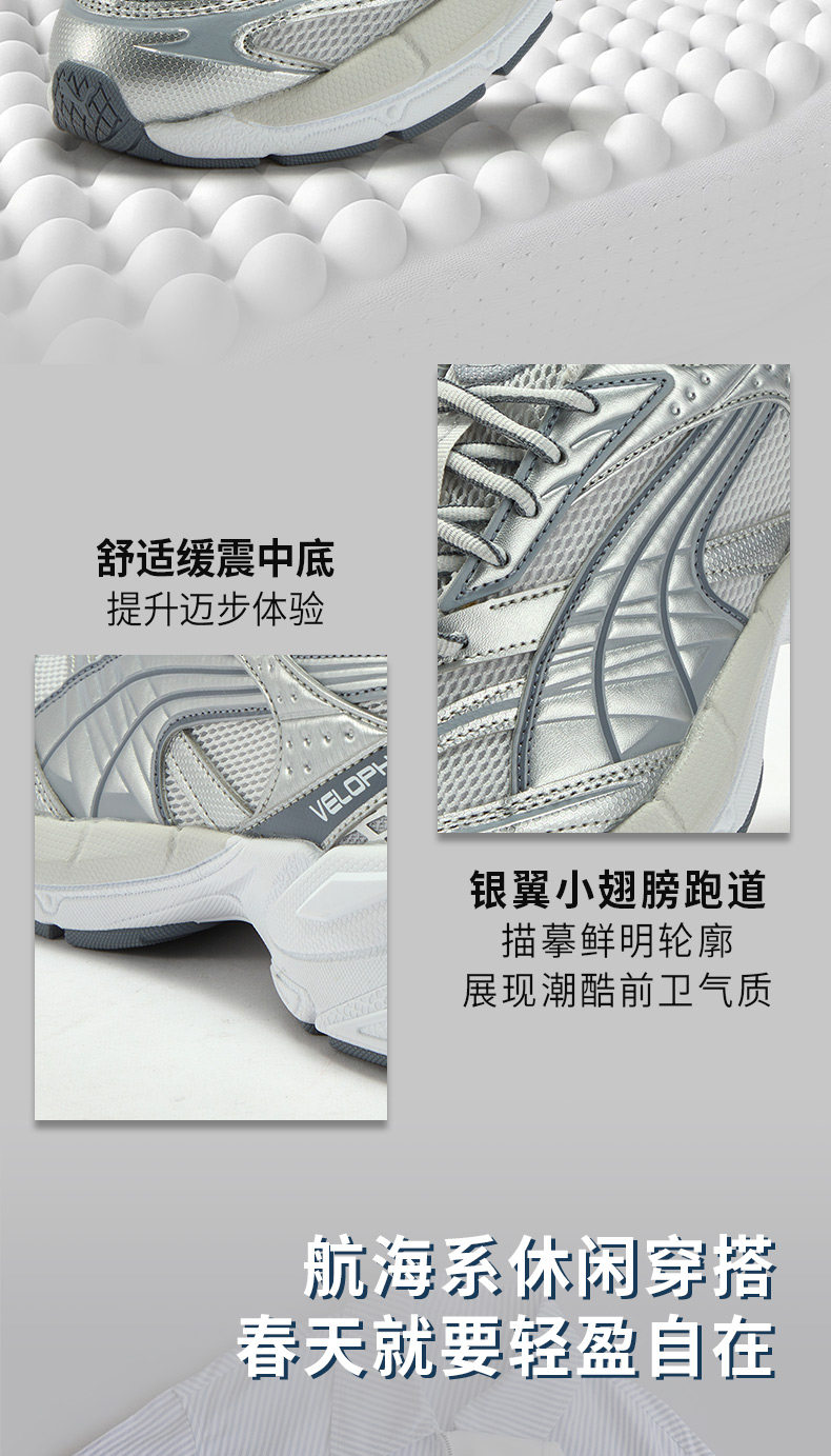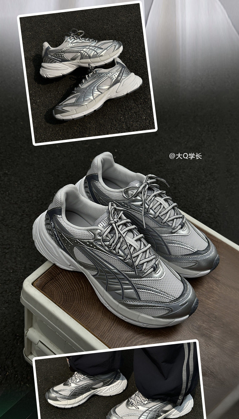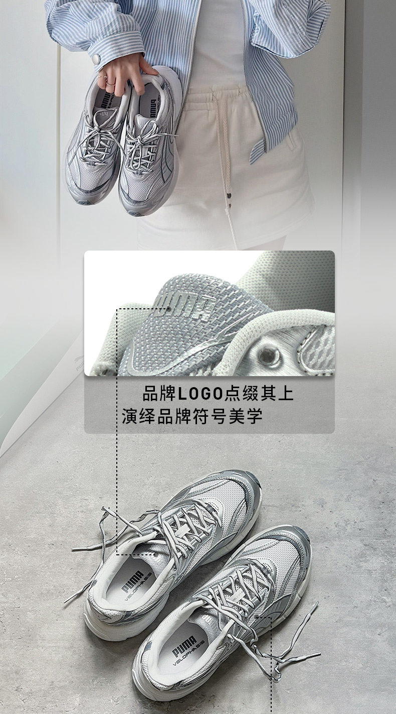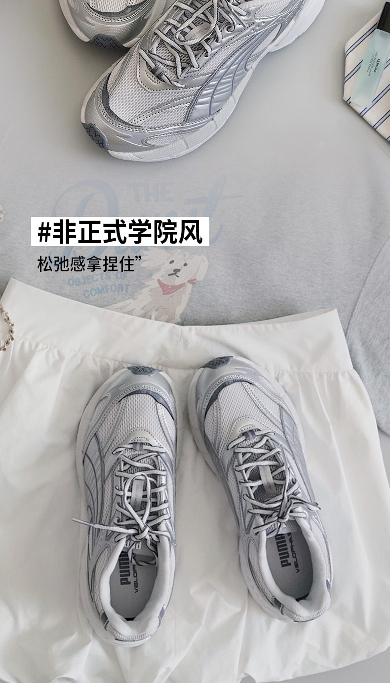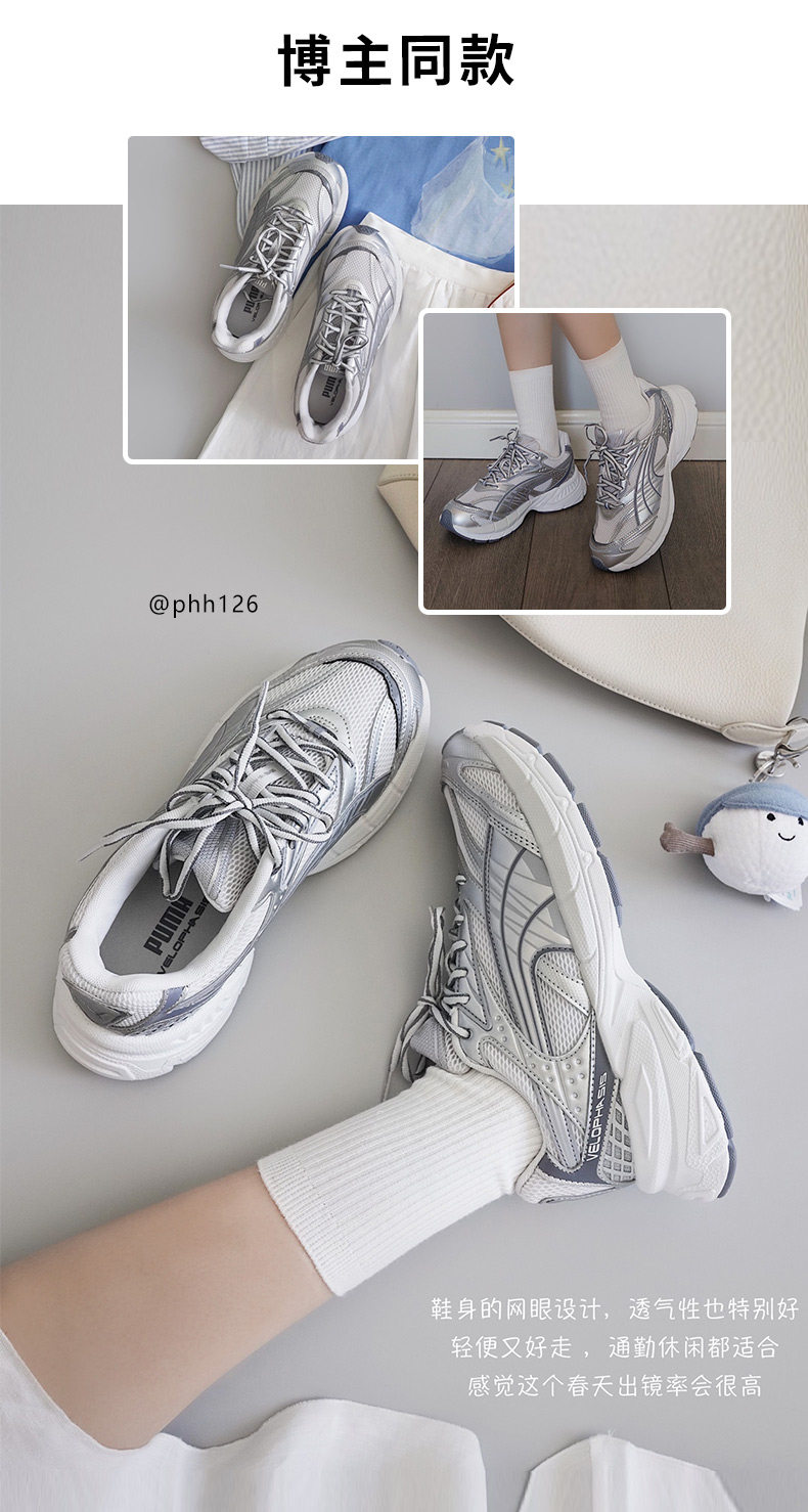 Y2K Silver Height-Increasing Dad Shoes Silver Wing Shoes for Men and Women Puma Spring Thick-Soled Shoes Velophasis 406204