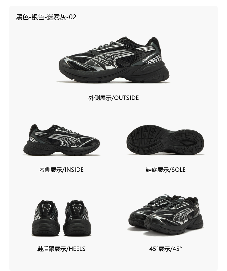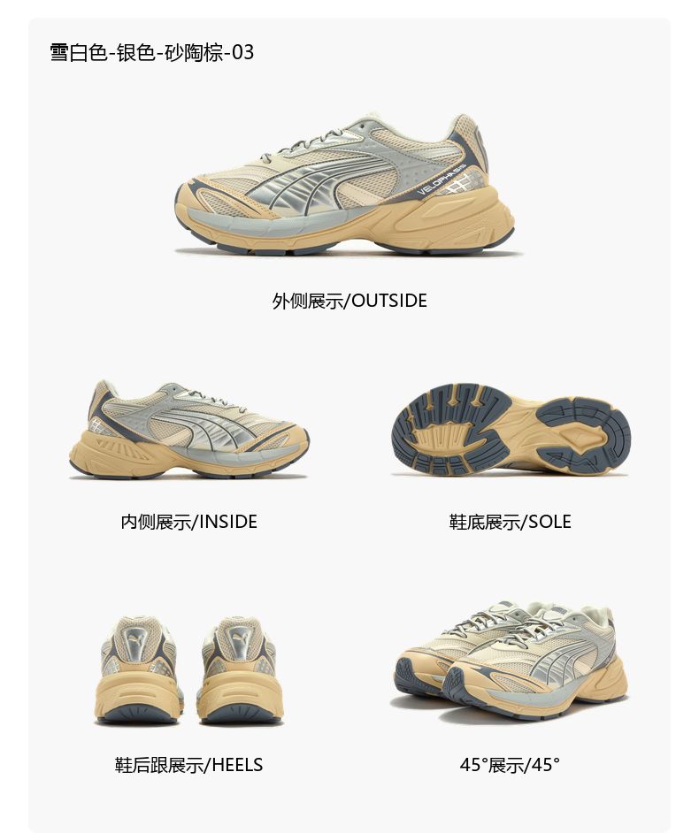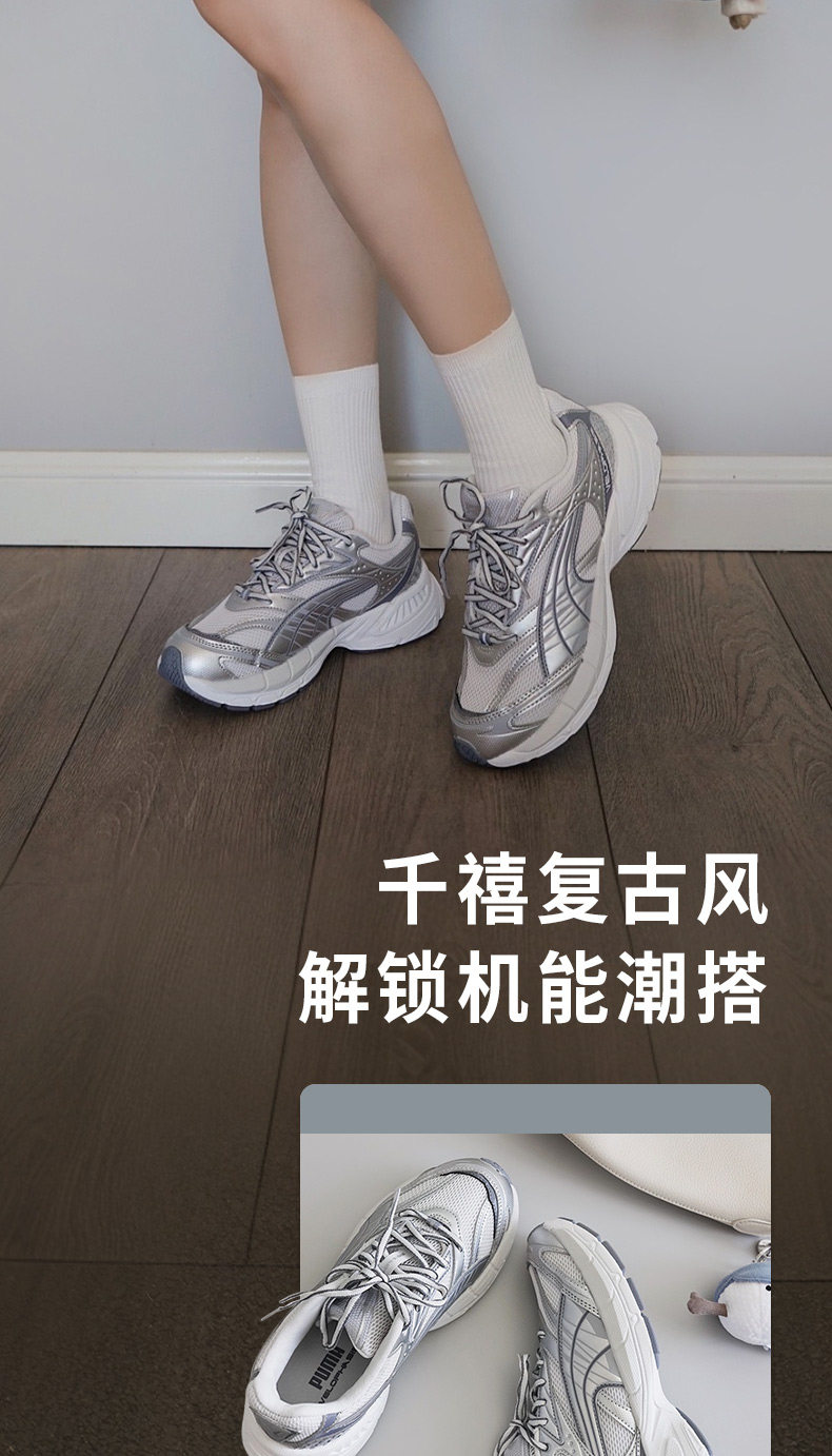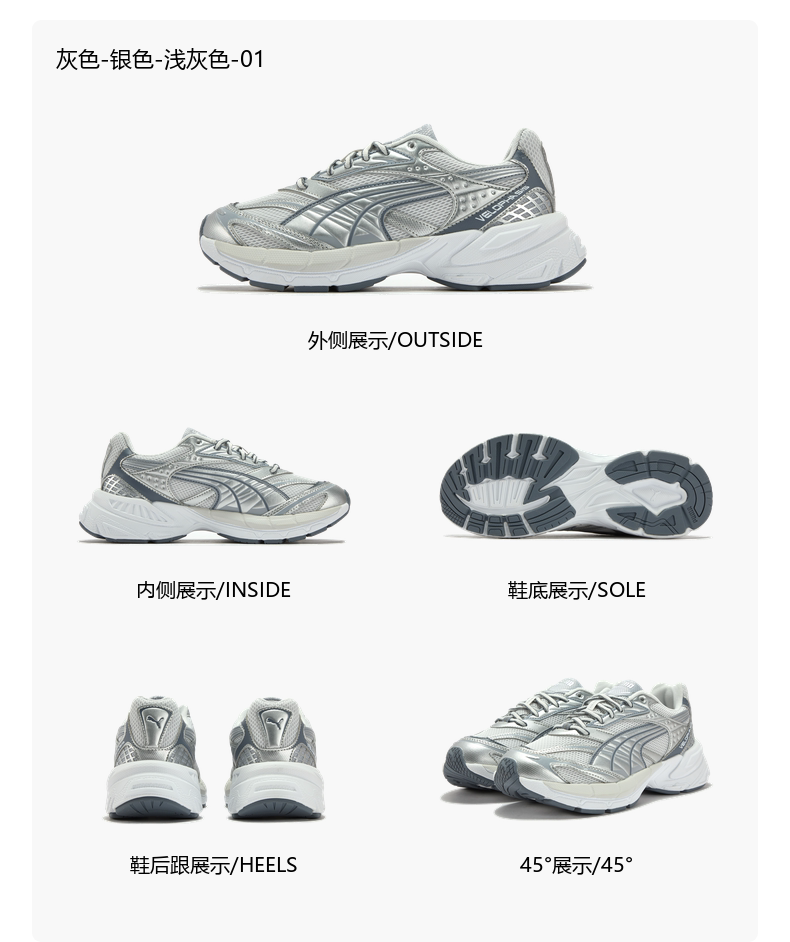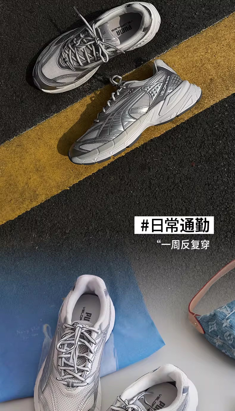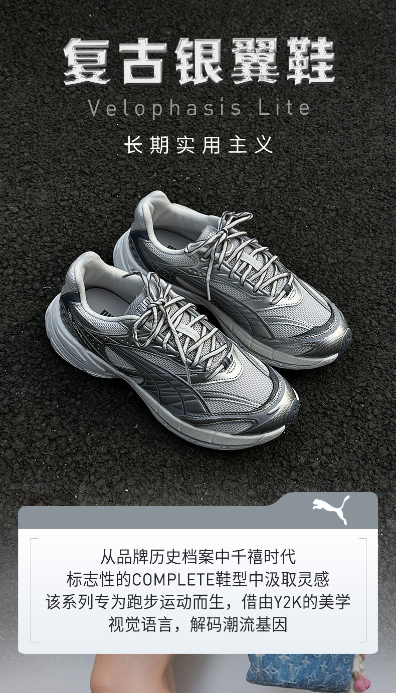 Y2K Silver Height-Increasing Dad Shoes Silver Wing Shoes for Men and Women Puma Spring Thick-Soled Shoes Velophasis 406204