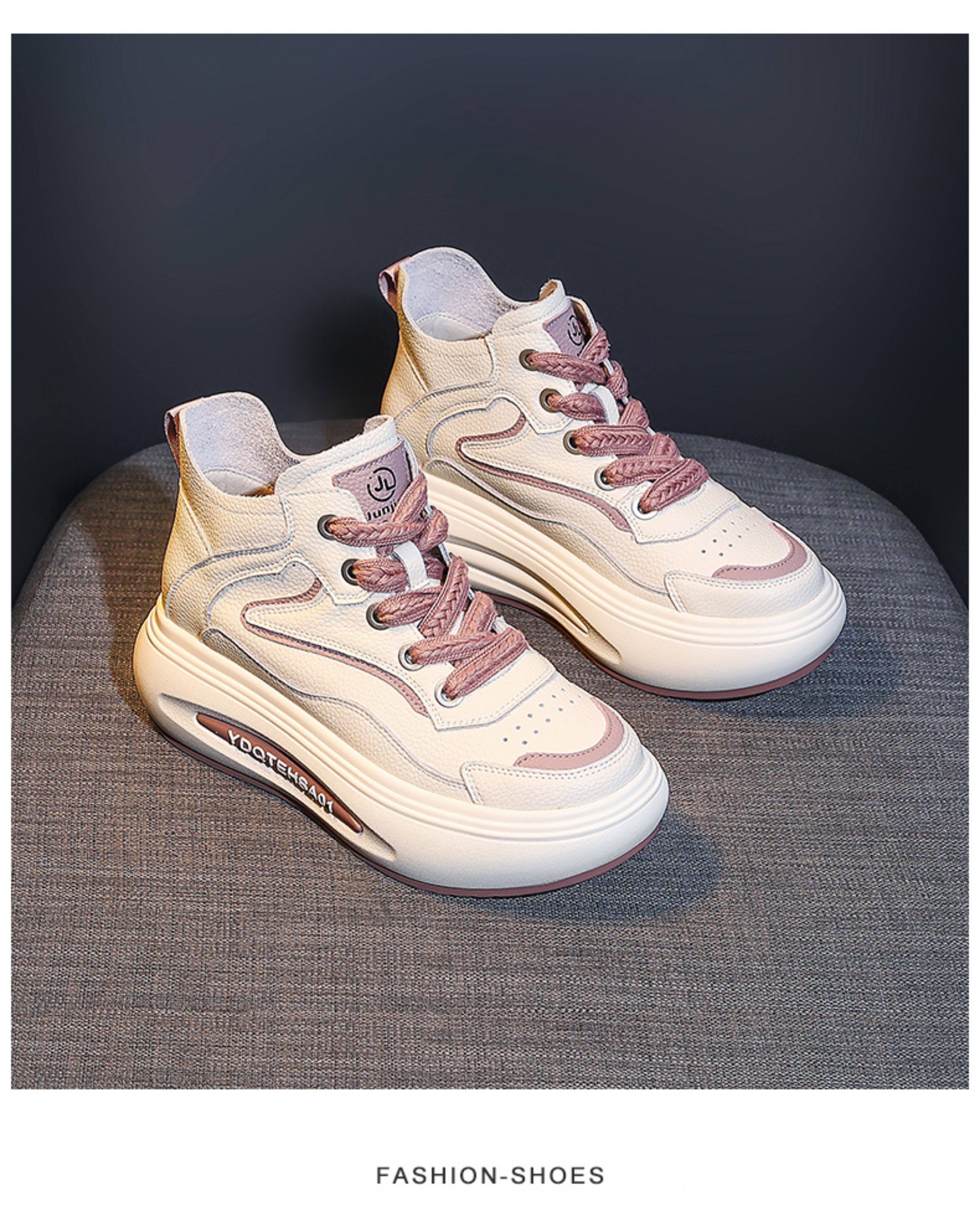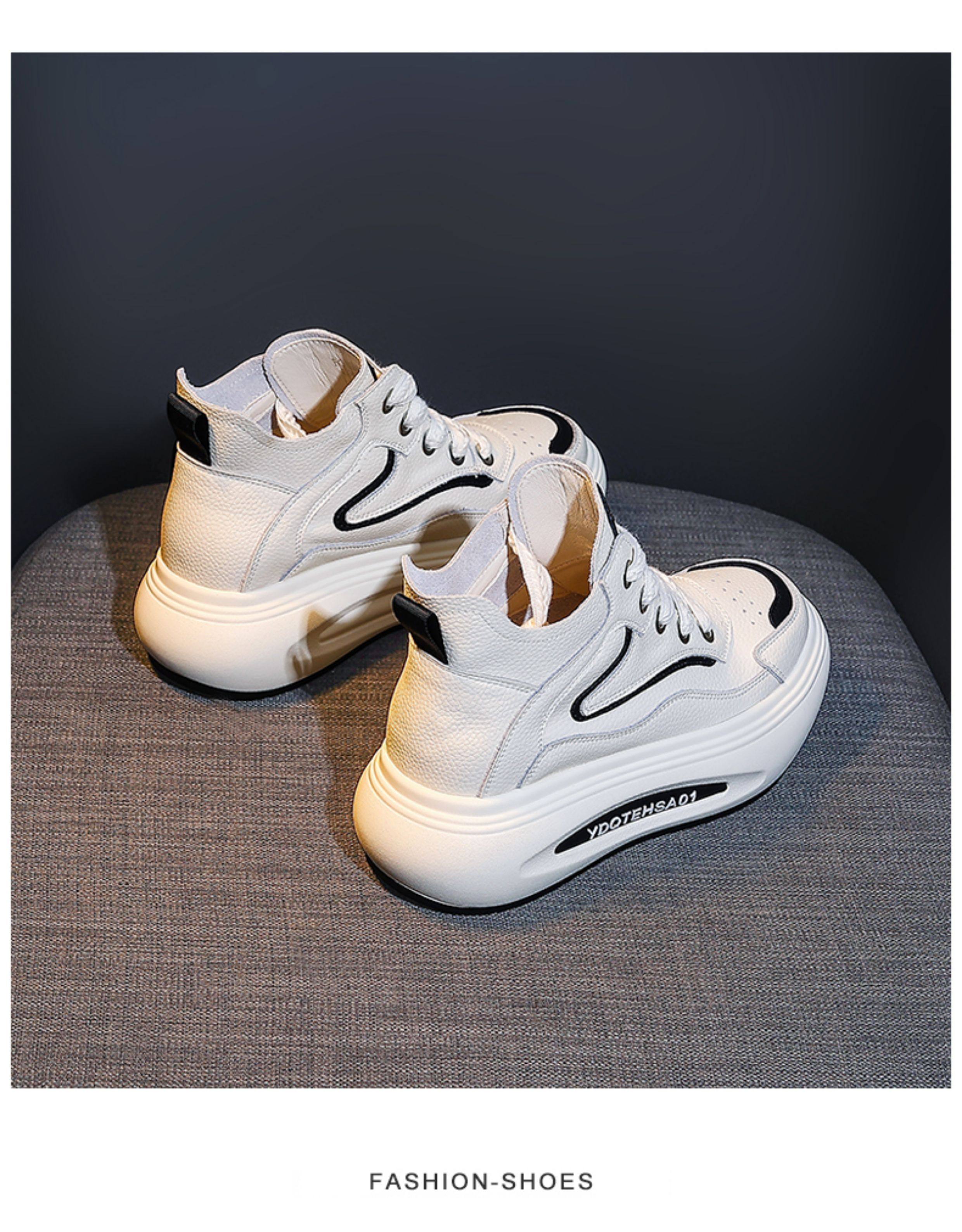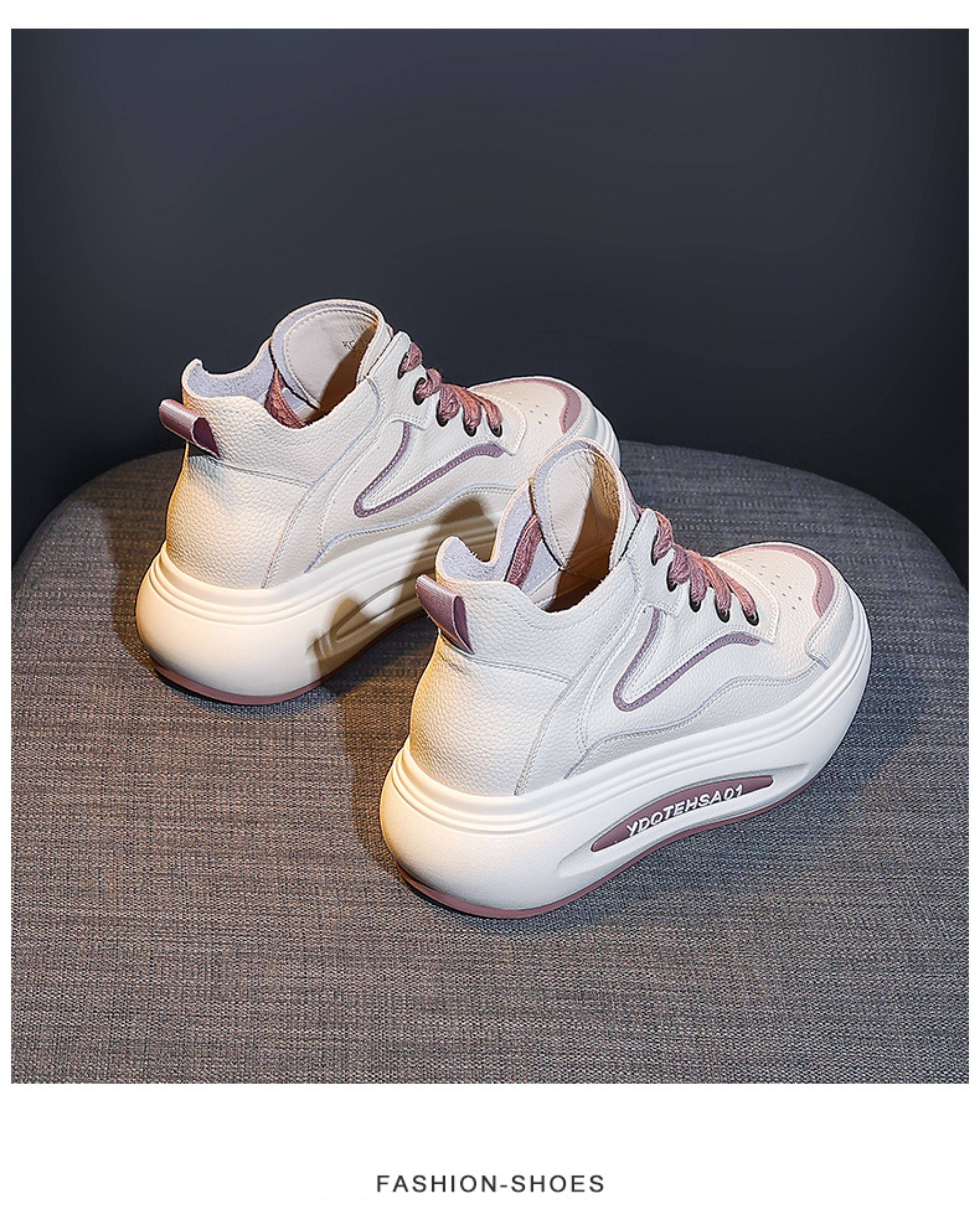 Genuine Leather High-Top Shoes for Women 2026 Spring New Platform Genuine Leather Versatile Sports Shoes Thick-Soled Casual White Shoes