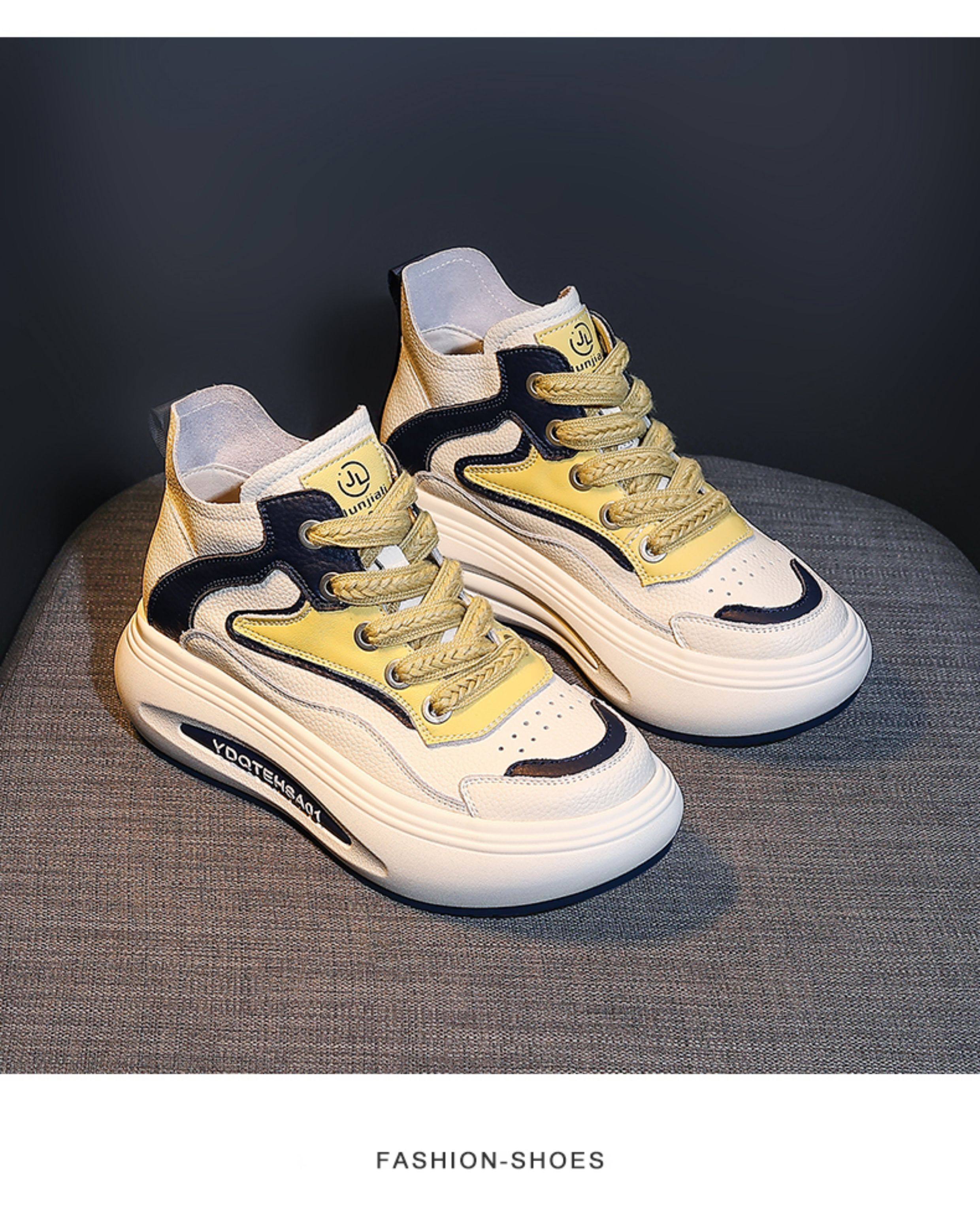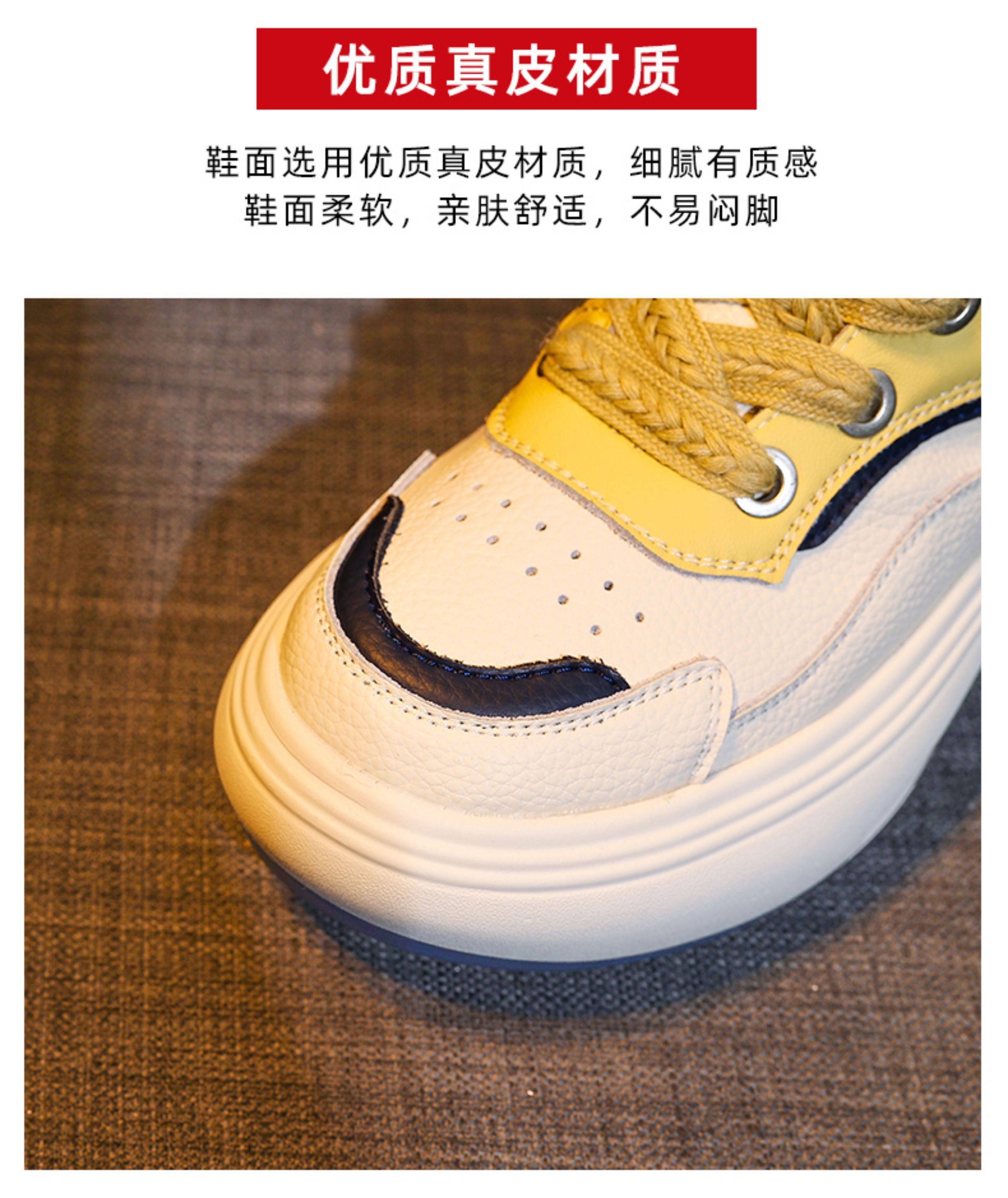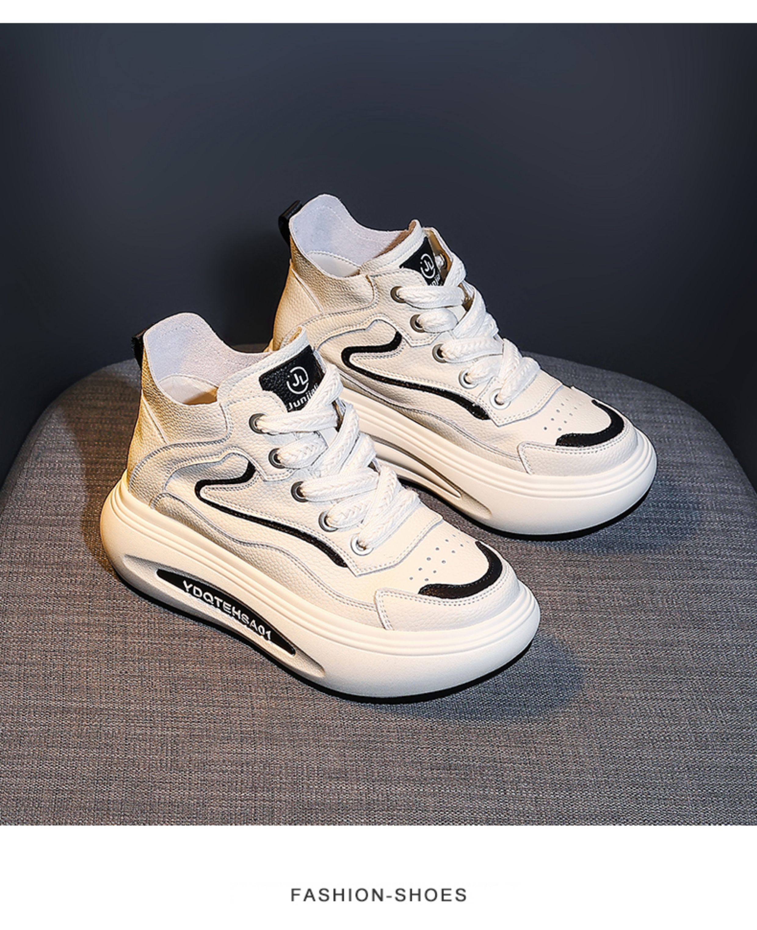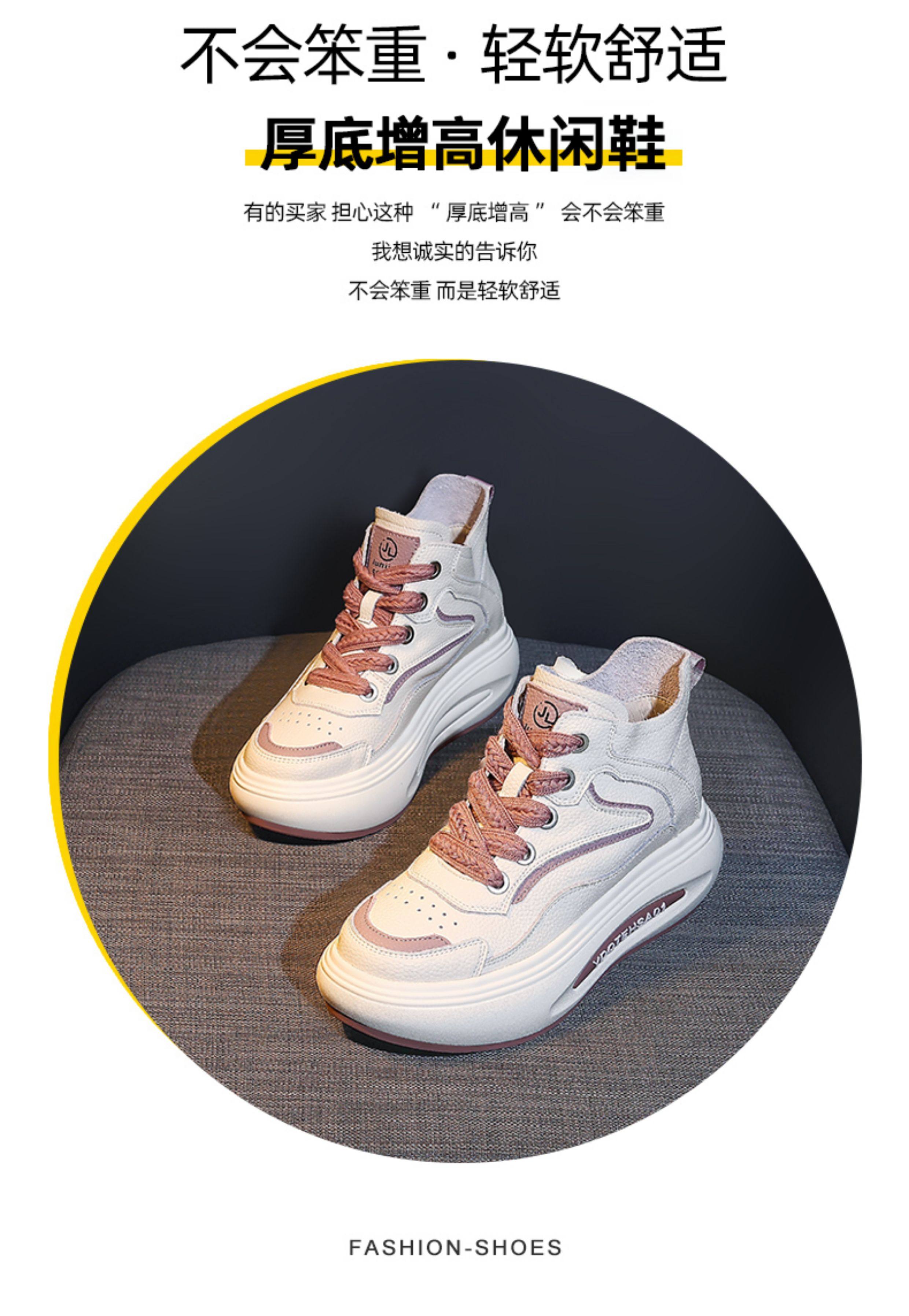 Genuine Leather High-Top Shoes for Women 2026 Spring New Platform Genuine Leather Versatile Sports Shoes Thick-Soled Casual White Shoes