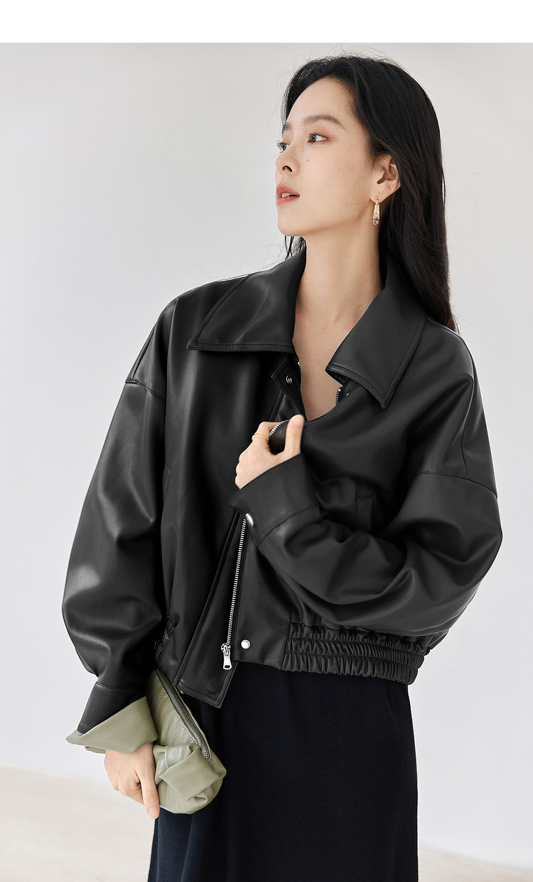 White Retro Brown Leather Jacket for Women 2026 Spring New Style Loose Biker Casual Yadan Style Short Leather Jacket