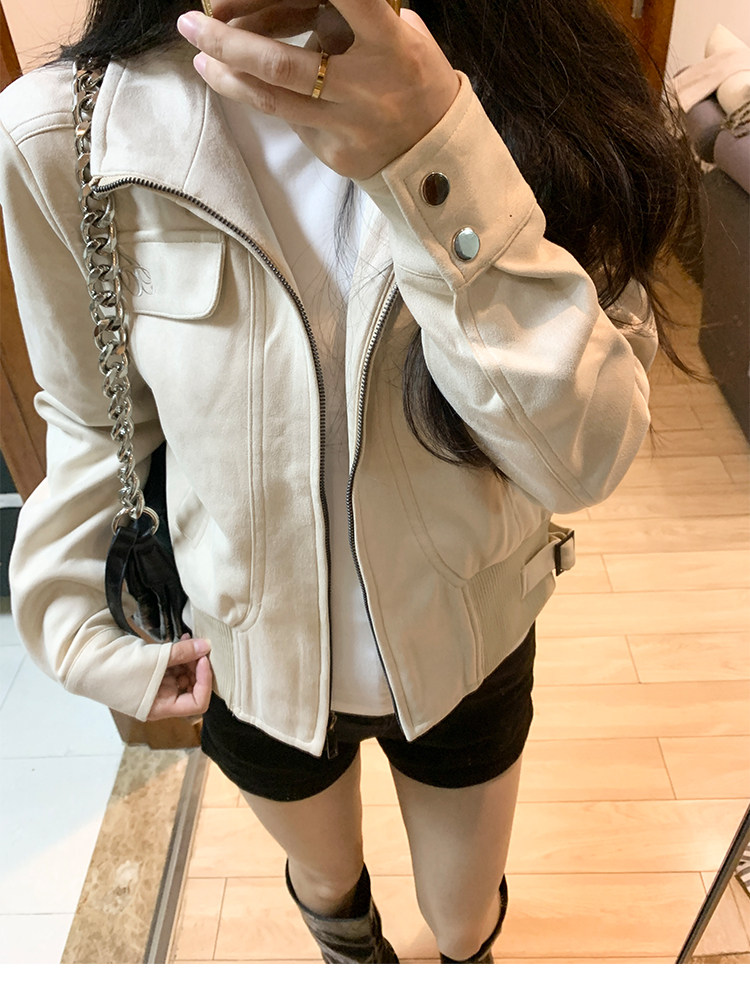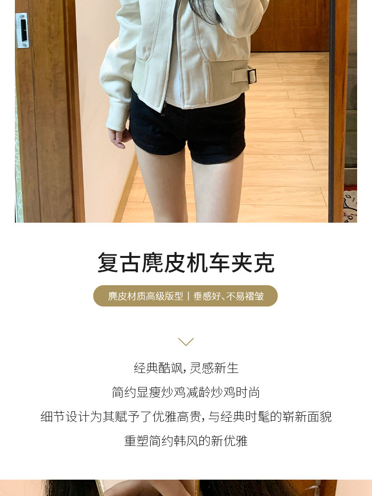 American Retro Suede Short Jacket for Women 2026 Spring New Style Petite Stylish Slim Fit Super Nice Biker Jacket
