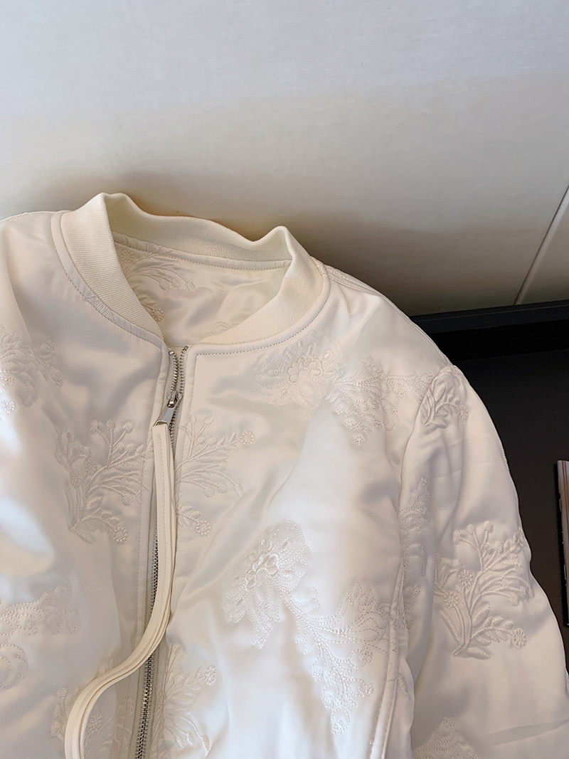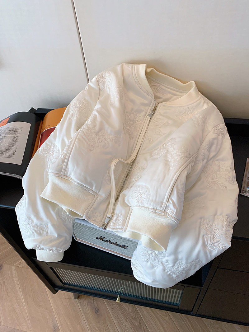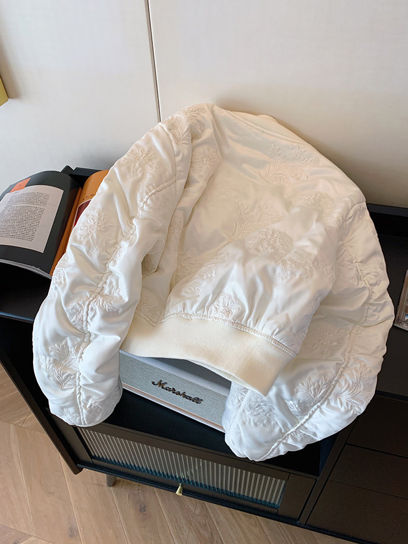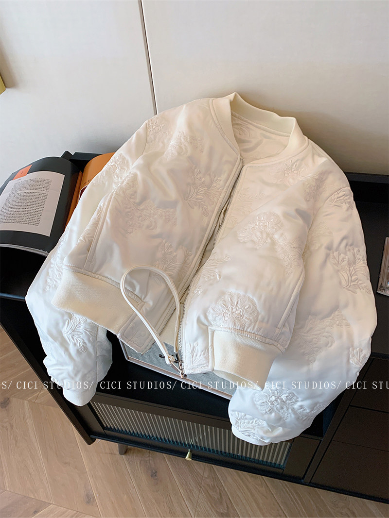 Stylish White Stand Collar Embroider Baseball Uniform Cotton Jacket Women Winter 2024 New arrival Chic Heattech Padded Short Jacket