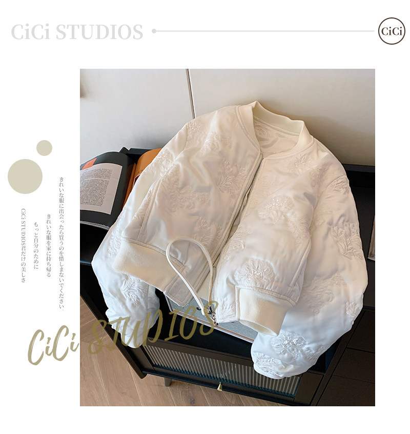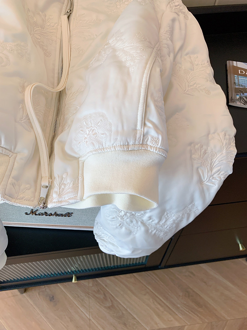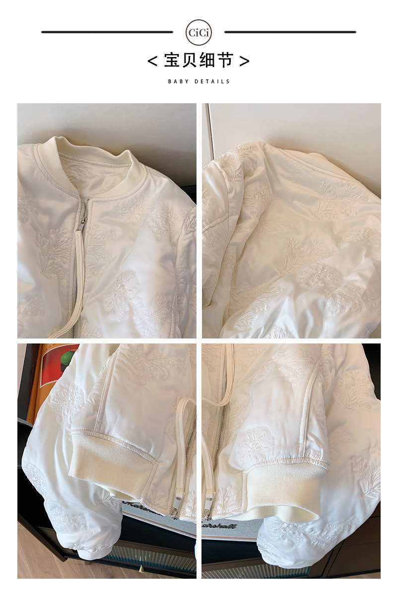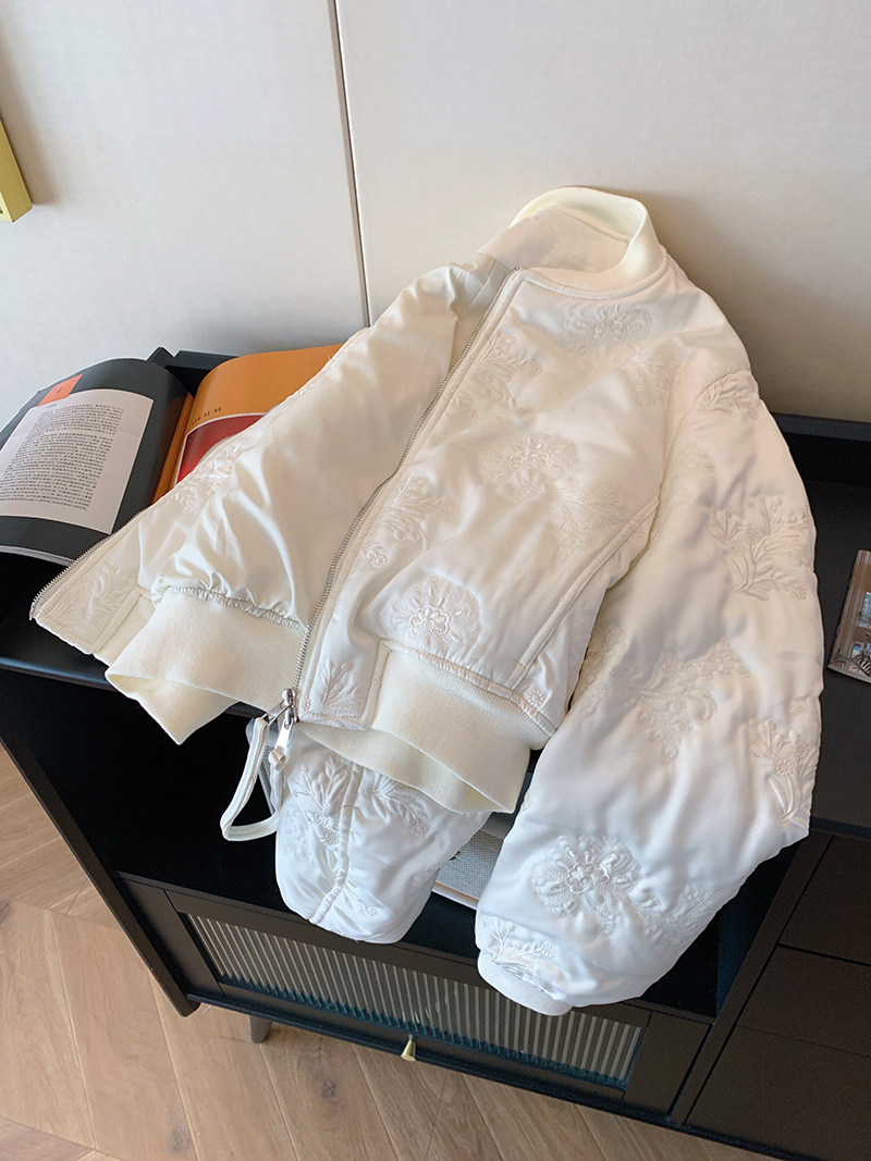 Stylish White Stand Collar Embroider Baseball Uniform Cotton Jacket Women Winter 2024 New arrival Chic Heattech Padded Short Jacket
