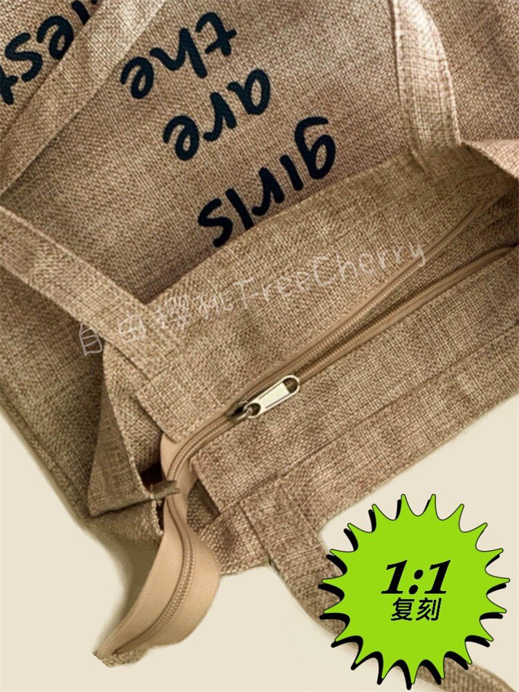 [1:1 Replica] Hong Kong Canvas Bag Niche Classy Happy Girls Zipper Linen Bag Shoulder Bag