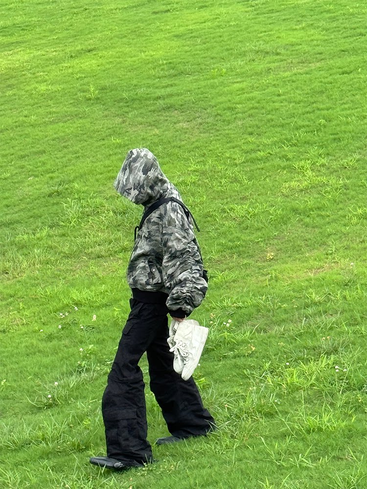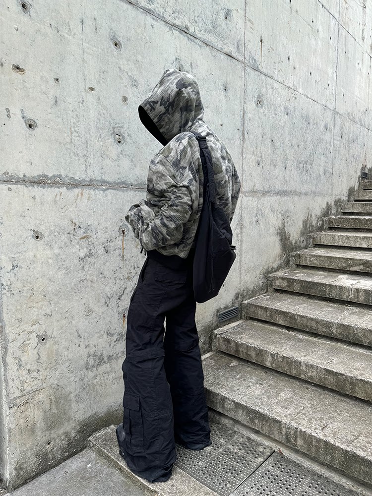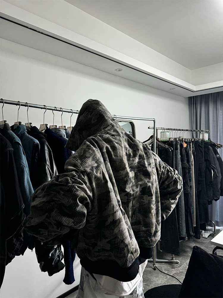 Popproject Camouflage Baseball Jacket Bomber Heavy weight Washed Artificial Destruction Hooded Pilot jacket Cotton Jacket