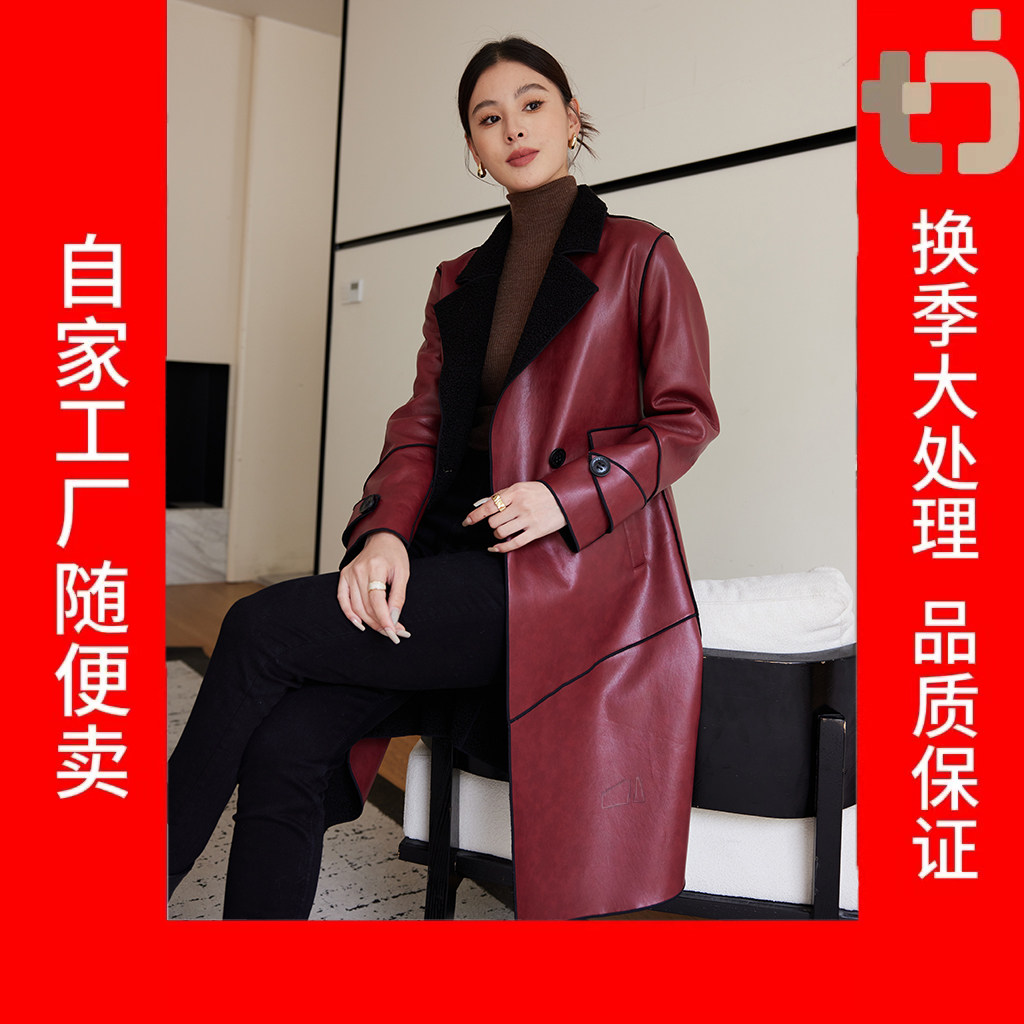 [Brand Order] Haining Leather Designer Sheep Style Leather Coat Slim-Fit Leather Coat Mid Length Long Length Ladies outside